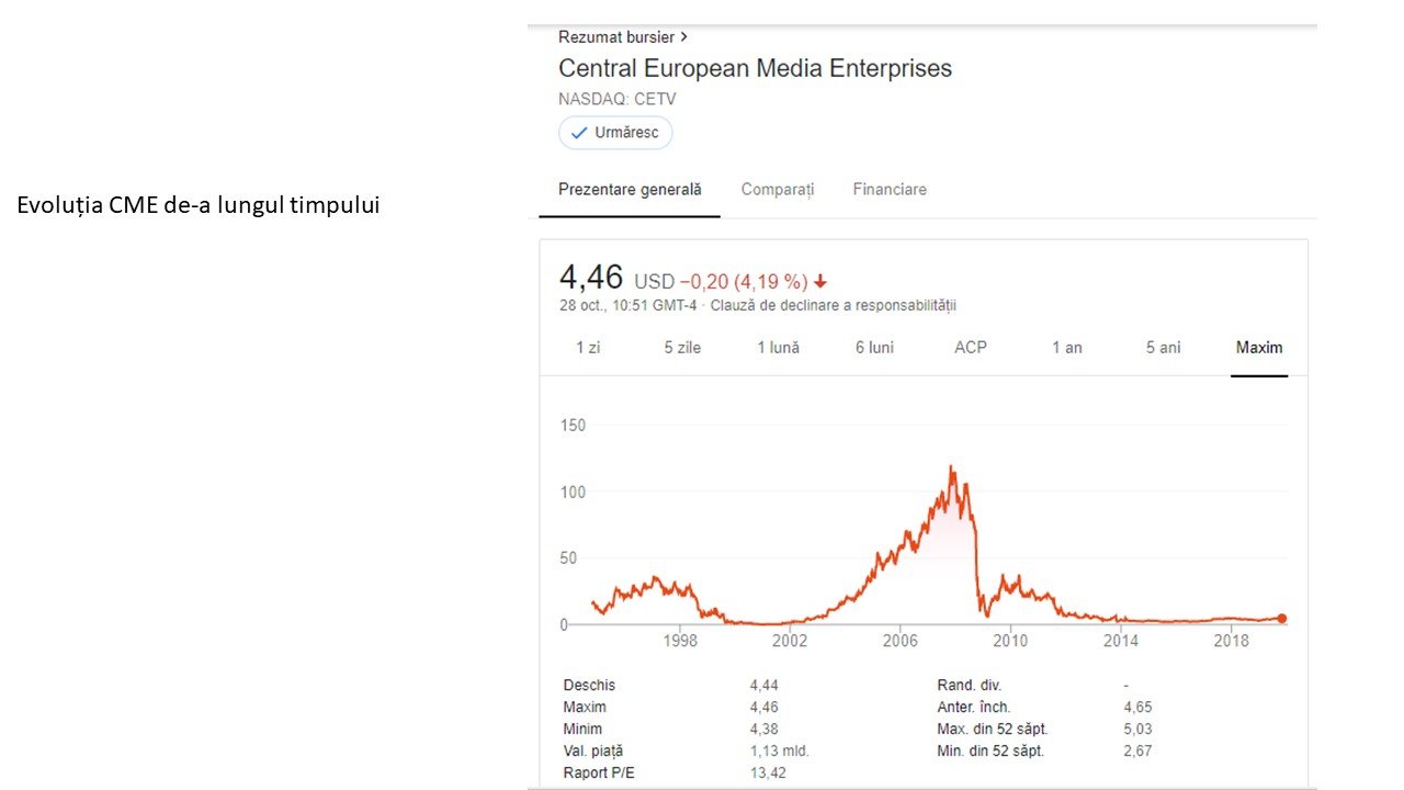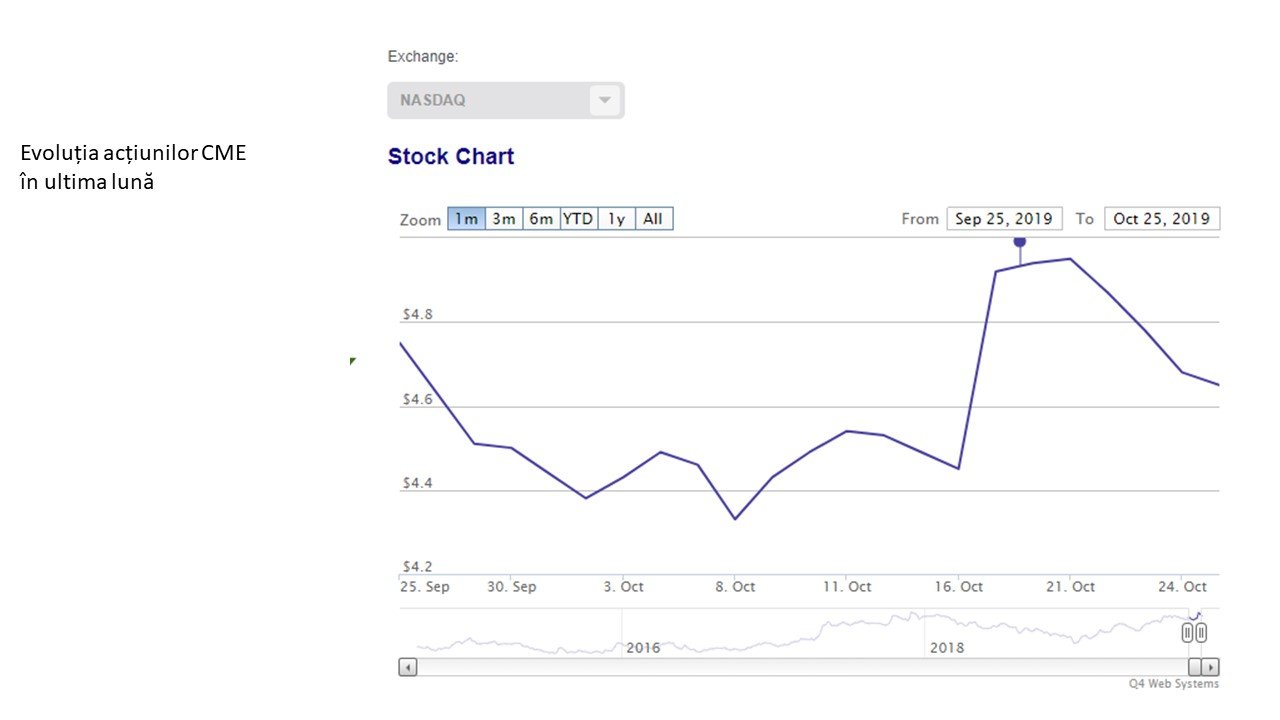 La ora la care scriu aceste rânduri, pe 29 octombrie, valoarea acțiunii CME oscila în jurul valorii de 4,40 dolari, sub nivelul zilei de vineri (înainte de a fi făcut anunțul vânzării).